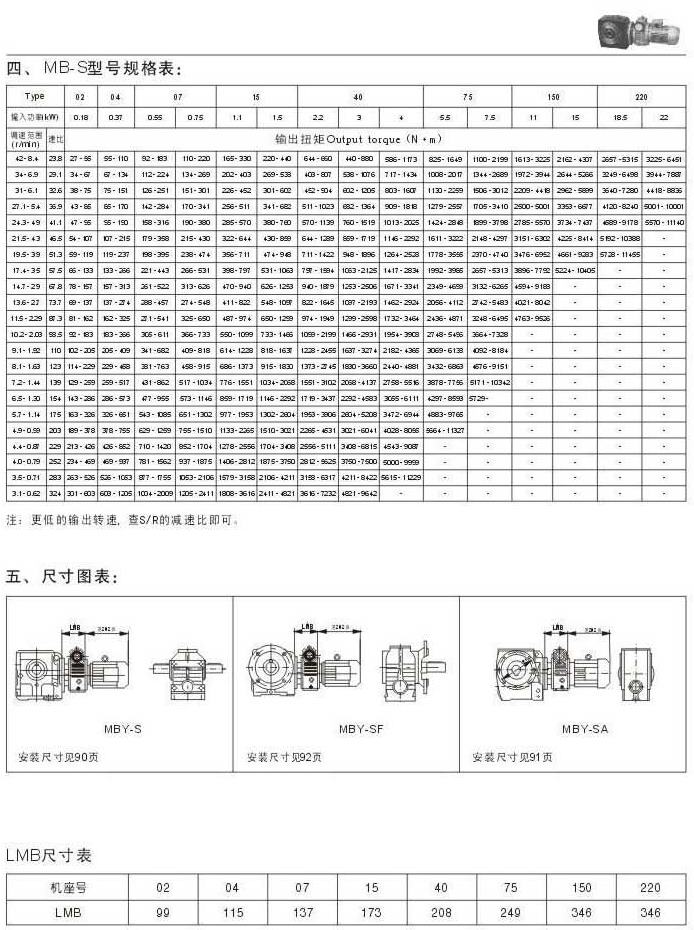 MB-S型號規格表尺寸圖表LMB尺寸表